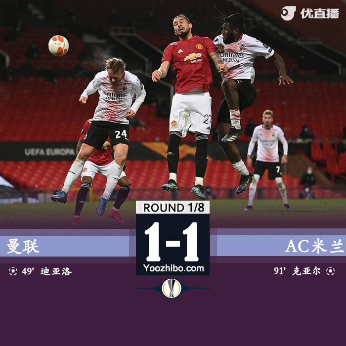 曼联1-1米兰 迪亚洛破门克亚尔92分钟头球绝平