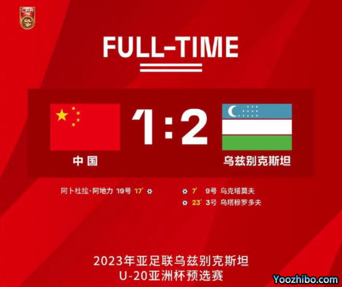 此役1-2输给乌兹别克斯坦,国青派出了替补阵容,让前两场没有太多比赛时间的霍深坪、李苏达、刘浩帆、刘浪舟、艾沙江、尤文杰、鲍胜鑫、刘国宝、雪合热提、阿地力等人首发,艾菲尔丁、樊超等主力球员坐在替补席。比赛中,国青早早丢球,乌兹别克斯坦在第7分钟打进1球;比赛第17分钟,阿地力利用反击打进1球,国青1-1追平比分;比赛第22分钟,乌兹别克斯坦通过任意球再次领先,将比分改写成2-1;比赛第42分钟,乌兹别克斯坦队员领到一张红牌,国青多打一人,可惜依然未能改写比分,最终乌兹别克斯坦2-1击败了国青。