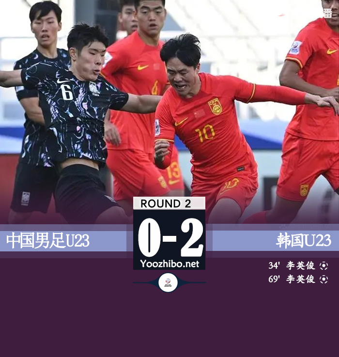 第69分钟,谢文能失良机后李泳俊完成梅开二度,中国国奥0-2韩国