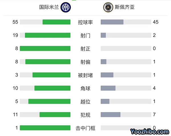 全场比赛结束,国际米兰主场3-0完胜斯佩齐亚。