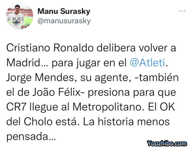 来源:24直播网07-20 11:2024直播网07月20日讯 凌晨,来自知名记者Manu Surasky的最新消息,葡萄牙巨星C罗已经决定回到马德里,不过他并不会重返皇马,而是加盟皇马的同城死敌马德里竞技队。他的经纪人门德斯(也是马竞7号菲利克斯的经纪人),也正在全力帮助C罗加盟马竞。记罗马诺也确认,C罗与马竞目前已经有过接触,但是还没有正式报价。