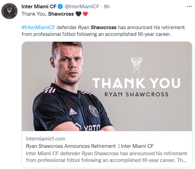24直播网01月11日讯 据迈阿密国际官方消息,34岁中卫肖克罗斯宣布退役。